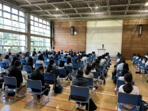 中学1年生にとっては、入学後初めての宿泊行事となりました。1日目は雨となりましたが、富士山に関するクイズを班で協力しながら活動に取り組むなど、同級生との交流を深めることができました。夜にはキャンドルサービスが行われ、柔らかな光の中で讃美歌を歌い、落ち着いた雰囲気の中で心を静めるひとときを過ごしました。
