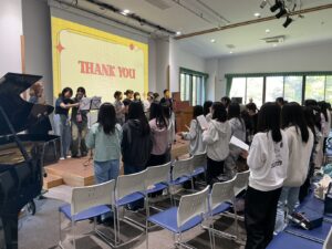 中学1年生にとっては、入学後初めての宿泊行事となりました。1日目は雨となりましたが、富士山に関するクイズを班で協力しながら活動に取り組むなど、同級生との交流を深めることができました。夜にはキャンドルサービスが行われ、柔らかな光の中で讃美歌を歌い、落ち着いた雰囲気の中で心を静めるひとときを過ごしました。