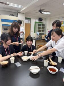 3月11日より台湾スタディツアーが行われました。高校1年生6名が参加しています。1日目は前鎮高中学校を訪問しました。歓迎式の後、台湾伝統のお茶の授業を前鎮高中の生徒と一緒に受けました。台湾においても自国の伝統を学び、継承していくことを大切にしているそうです。また、昼食はバディを組んだ生徒のクラスに交じって食べました。緊張しながらも、楽しくすごしました。午後は地域探索で道教の廟をたずねました。