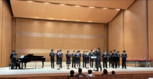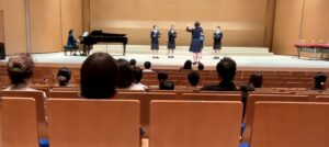 当日は大きなホールで、たくさんのお客様の前に立つ貴重な機会をいただき、部員一同緊張しながらも、心を込めて歌うことができました。普段なかなか経験することのできない男声合唱との共演も実現し、部員たちにとって大変良い経験となりました。