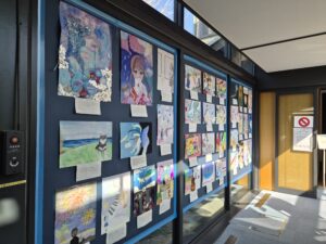 山手西洋館ユースギャラリーとは、横浜山手西洋館で山手地区にある学校の児童・生徒の美術作品を山手の西洋館を使って一斉に展示するという企画で、本校は毎年参加しており、今年度はイタリア山庭園内の外交官の家に展示しています。数多くの美術の授業や、美術部の活動で制作した作品を展示しています。趣のある西洋館のインテリアの中に飾られると、作品も一層素敵に見えます。是非足をお運びください。