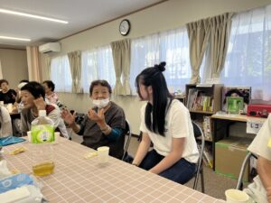 2日目の午前中には、3グループに分かれ仮設住宅の方々や現地の小学生の方々などと交流しました。仮設住宅では心の復興をテーマに高齢者の方々とジェンガやババ抜き、ボッチャを行い、能登の方々との親睦を深めました。様々な貴重なお話をお聞きすることができましたが、その中で特に心に残っていることは、高齢者の方々が私たち生徒よりも何倍ものエネルギーがあふれ、今この瞬間を楽しんでいるように見えたことです。震災という大きな障壁にぶつかり、乗り越え難い多くの困難に見舞われたにも関わらず、明るい現地の方々の強さにとても心が動かされました。また、心の底から純粋に私たちが仮設住宅を訪れたことを喜んでくださり、人を助けることの嬉しさを実感し、また人を助けられることがしたいと強く感じました。この経験を通して、今後何か挑戦をする際に、「小さなことでも失敗しそうでもとにかくアクションをとってみる」という気持ちを持つことを身につけることができました。