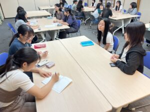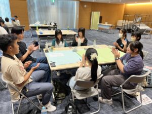 ノトノミライの時間では班ごとに意見交換をして、【個のミライ】、【震災のミライ】について話し合いました。話し合いでは各々の住んでいる場所や価値観を共有して最後に全体で意見交換を行いました。対話でここまで意見を深められたのは初めてのことでした。視点が多角的になり、お互い新しい気づきを与え合っていたのがとても印象的でした。私たちの今回のスタディーツアーで1番深く印象的だった一つのプログラムです。