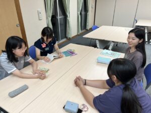 小学校では、1年生から4年生までの生徒の方々と交流しました。夏休みの宿題を一緒に行ったり、能登に伝わる伝統的な将棋の駒を使った遊びにも挑戦するなど、交流をしながら能登について子どもたち特有の視点から理解を深めていきました。初めてのことも多くありましたが、子どもたちの素直であたたかい笑顔に触れ、とても充実した時間を過ごすことができました。
