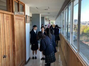 また、そのあと行ったスクールツアーでは、中学2年生が中学1年生を案内しました。先輩たちがやさしく声をかけながら校内を案内する姿が見られ、1年生にとっても安心できる時間になりました。